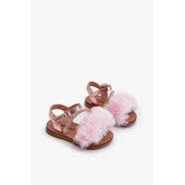 Dětské sandály na suchý zip s kožíškem, růžový Rosavere