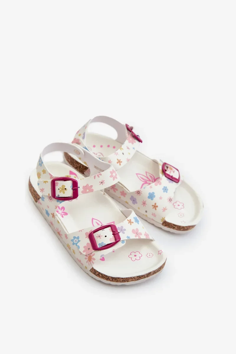 Dětské sandály s květinami a přezkami bílé Memoria