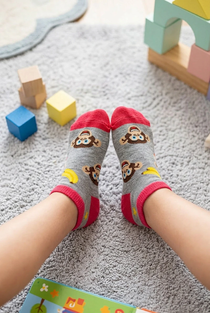 Dětské šedé kotníkové ponožky s opičkami a banány