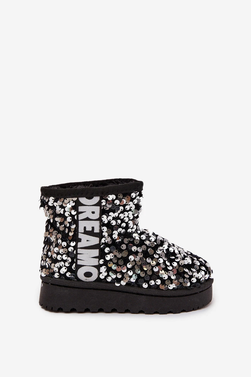 Dětské sněhule boty zateplené s flitry Černo-stříbrné ERebbica