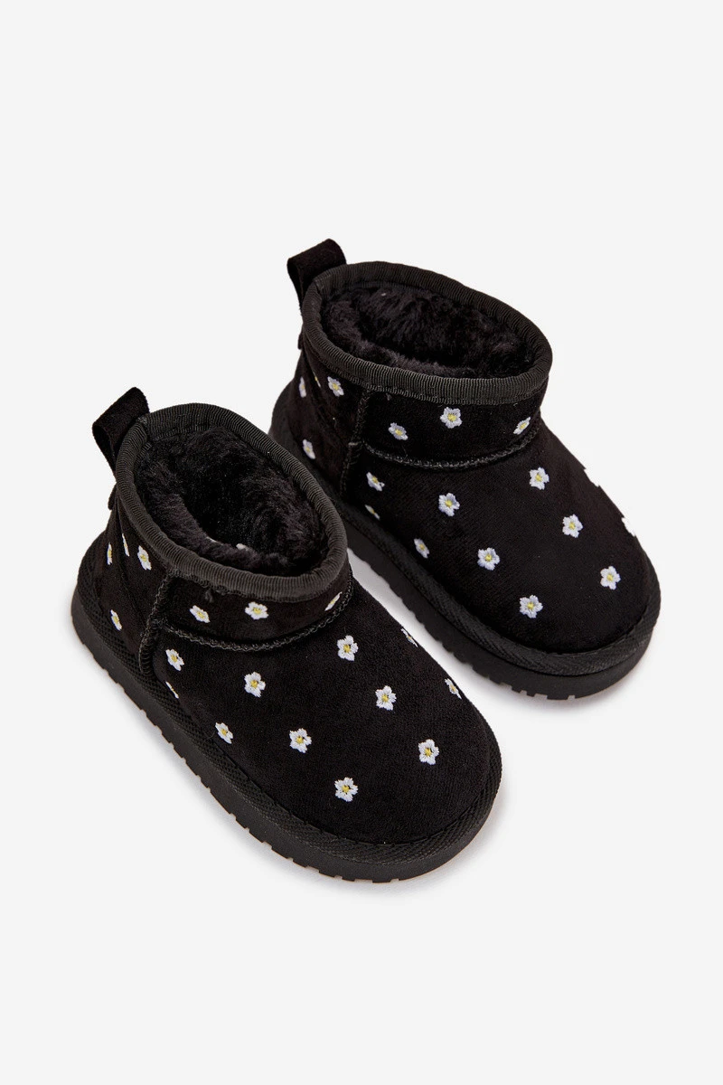 Botky dobře ladí s černou, růžovou nebo barevnou zimní bundou. Květinový motiv dodá dětskému outfitu hravost a veselost.