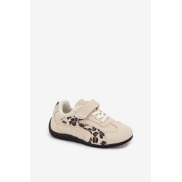 Dětské sportovní boty na suchý zip béžové s leopardem Perrin