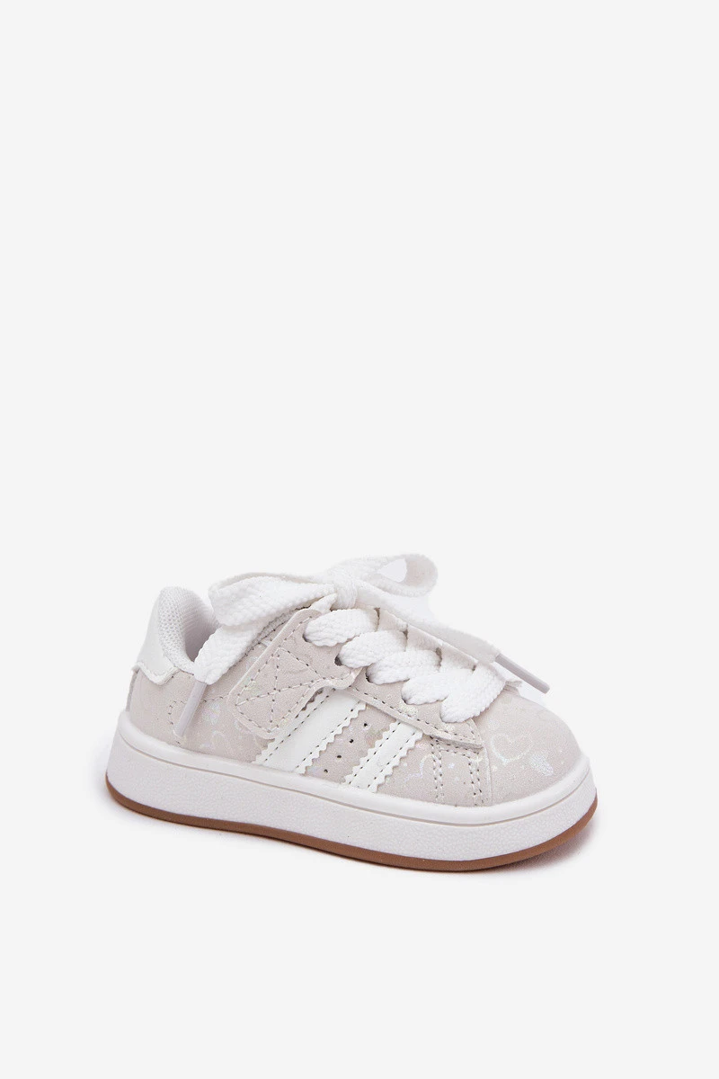 Dětské sportovní boty vyrobené z eko kůže jsou roztomilým návrhem pro malé nožky. Vzor srdíček dodává sladký akcent každé stylizaci. Model se šněrováním zajišťuje dokonalé padnutí. Ideální do školky, školy nebo na hry venku. Při výběru velikosti se řiďte tabulkou velikostí.