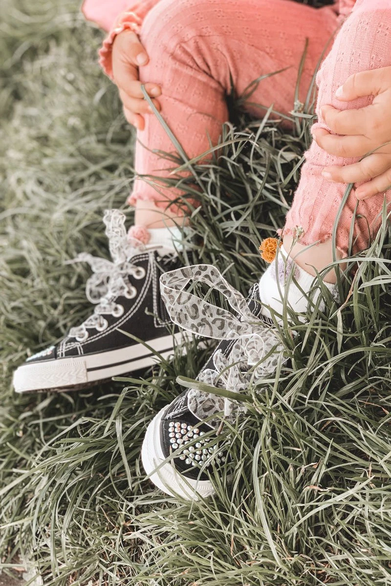 Dětské tenisky vyrobené z textilního materiálu odolného vůči nečistotám. Boty mají protiskluzovou podrážku a měkkou materiálovou stélku. Na vnitřní straně je zip pro snadné navlékání. Při výběru velikosti použijte tabulku velikostí. Tenisky mají dva typy tkaniček - černý a barevný leopardí potisk.