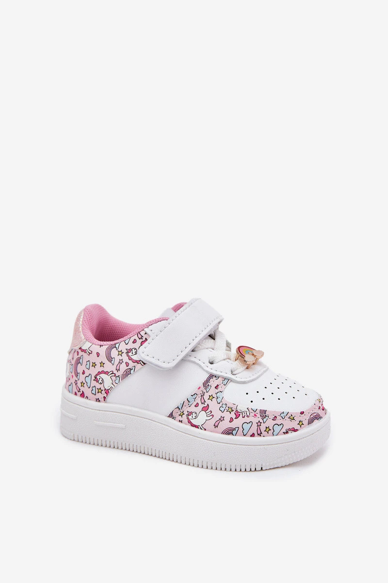 Dětské sportovní boty s motivem jednorožce. Zapínání na suchý zip, s gumičkami napodobujícími šněrování, zajišťuje pohodlí a snadné obouvání. Připevněný duhový odznak jim dodává kouzlo. Měkká vložka zajišťuje pohodlí po celý den, což je činí ideální volbou do školky, školy a venkovních her. Při výběru velikosti se řiďte tabulkou velikostí.