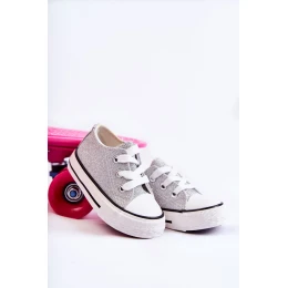 Dětské tenisky z textilního materiálu. Zdobené třpytkami. Klasická vazba. Špička vyztužená pryžovým materiálem. Měkká a textilní stélka. Gumová podrážka a protiskluzová. Lehké a pohodlné tenisky. Ideální na jarní a letní sezónu. Při výběru velikosti použijte tabulku velikostí.