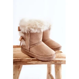 Dětské Teplé Sněhule Semišové s Mašlemi Světle béžove Funky