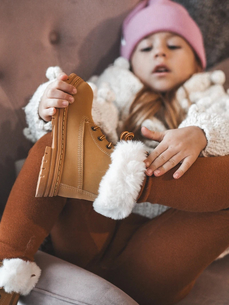 Dětské Trapery Botky na Zip s Kožešinou Camel Gerande