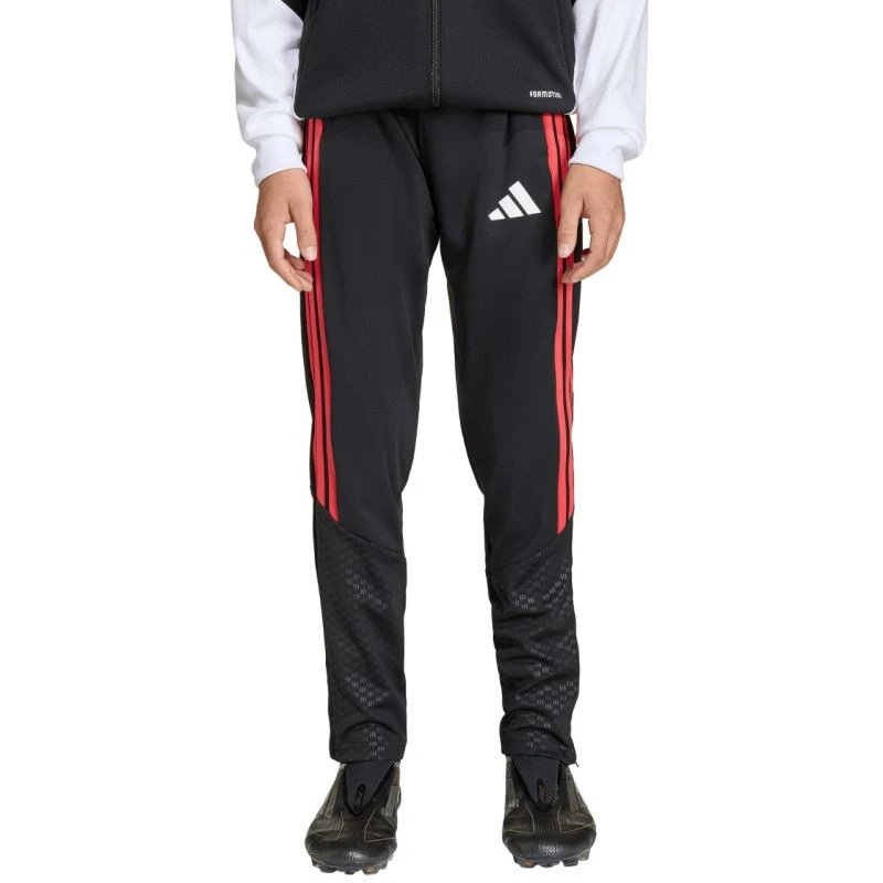 Dětské tréninkové kalhoty adidas Tiro 26 Competition černá/červená KA5136 Dětské kalhoty adidas Tiro jsou ideální na trénink, jsou vyrobeny z recyklovaných, rychleschnoucích vláken, mají přizpůsobený střih s elastickým pasem a nastavitelnou šňůrkou, boční kapsy na zip a technologii Formotion pro neomezený pohyb. Materiál: 100% recyklovaný polyester.