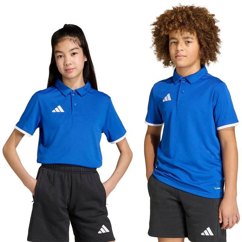 Dětská polokošile adidas Entrada 26 modrá JZ6625 Juniorská polokošile adidas Entrada kombinuje sportovní styl s elegancí a je vybavena technologií Climacool, která odvádí a rozptyluje pot. Límec na knoflíky dodává elegantní vzhled a malé logo. regular fit. 100% recyklovaný polyester.
