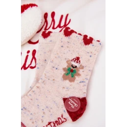 Dětské vánoční ponožky s medvídkem a srdíčky z alpaka vlny – béžové