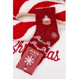 Dětské vánoční ponožky s medvídkem z alpaka vlny – červené
