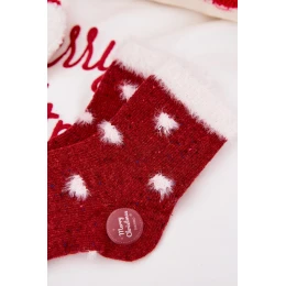Dětské vánoční ponožky se srdíčky s kožíškem z alpaka vlny – červené