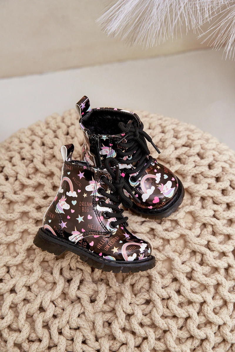 Dětské zateplené boty se zipem jednorožci černé Tiptop