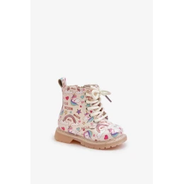 Dětské Zateplené Kotníkové Boty Se Zipem Jednorožci Béžové Tiptop