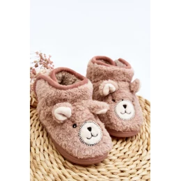 Dětské zateplené pantofle s medvídkem, růžová Eberra