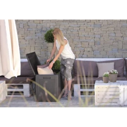 Box RATIO PLUS s elegantním povrchem připomínajícím ratan je ideální pro ukládání polštářů, dek, nářadí, zahradních hraček nebo jiných předmětů a chrání je před prachem nebo deštěm.