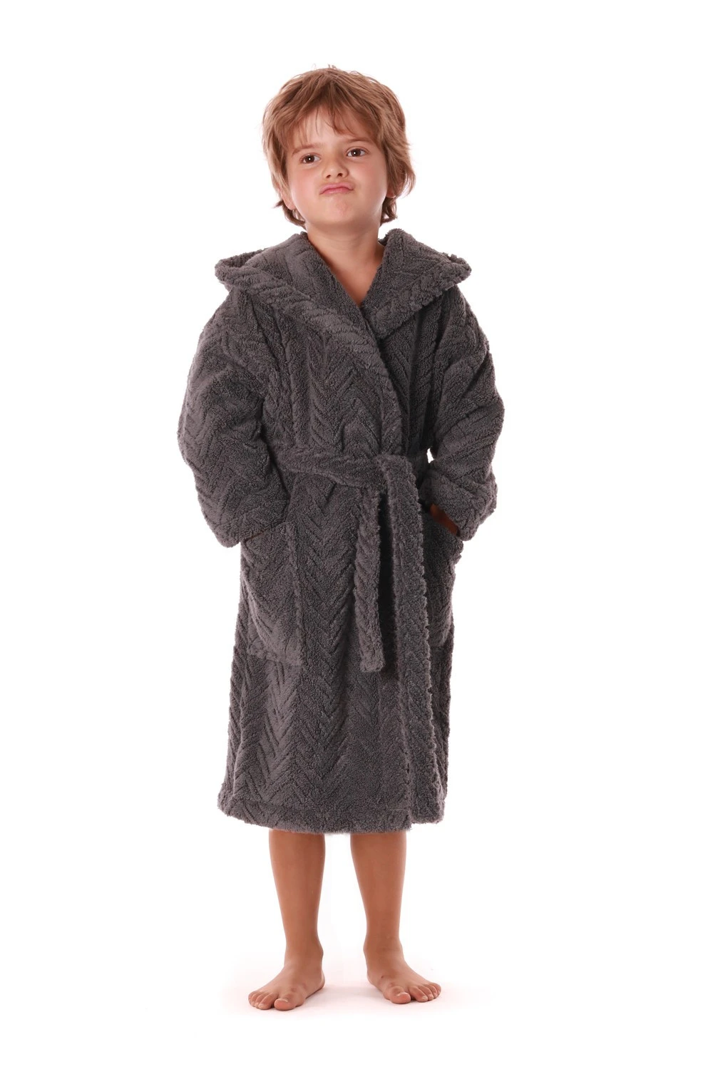 - Dětská verze županu Athena je navržena s ohledem na potřeby dětí – měkoučký, lehký, s praktickou kapucí a kapsami.