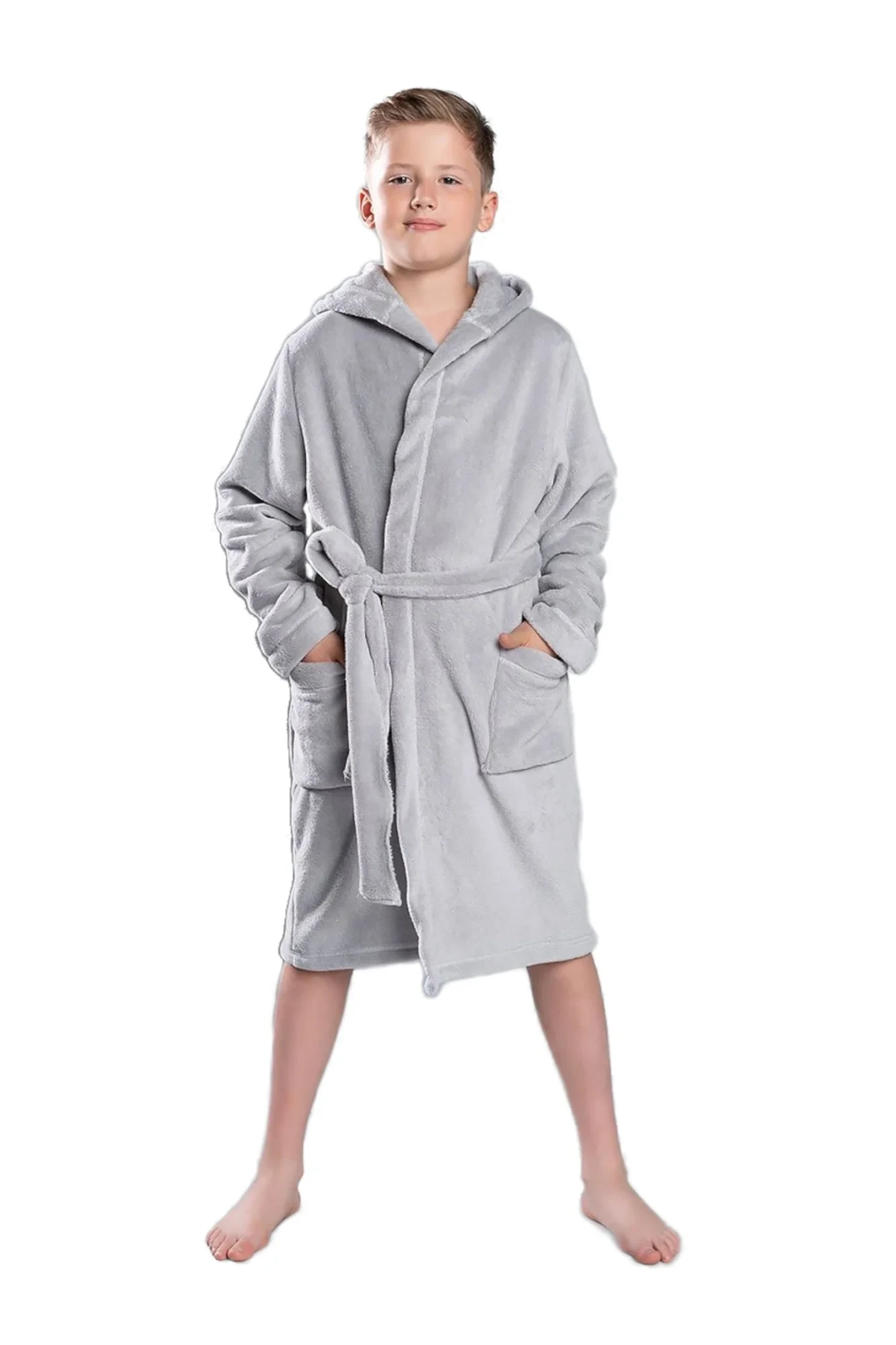 Chlapecký župan Mimas ITALIAN FASHION - šedá barva - z velmi kvalitního materiálu - s dlouhými rukávy - zavazování na pásek - na bocích jsou kapsy - s kapucí - délka nad kolena