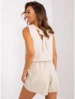 Rozměry soupravy ve velikosti S měřené na plocho: šířka topu v podpaží - 38 cm, délka topu - 43 cm, šířka šortek v pase - 34 cm, výška topu - 31 cm, délka šortek - 38 cm.