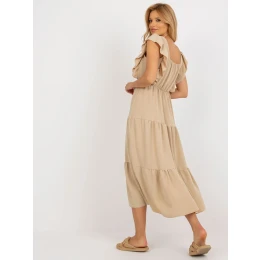 Tmavě béžové midi šaty s volánem .