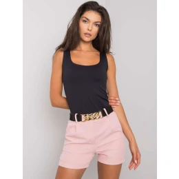 Špinavě růžové šortky s ozdobným páskem.