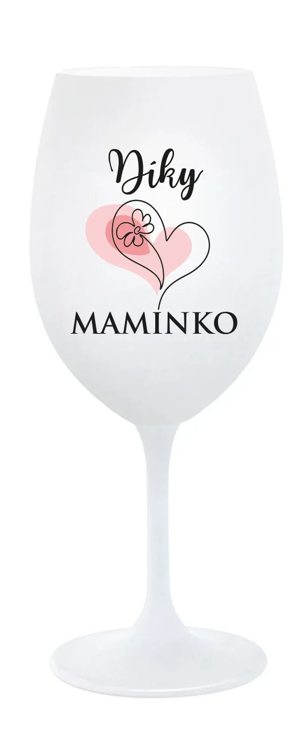 DÍKY MAMINKO - bílá sklenice na víno 350 ml