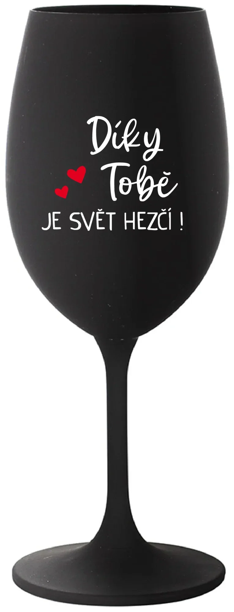DÍKY TOBĚ JE SVĚT HEZČÍ! - černá sklenice na víno 350 ml