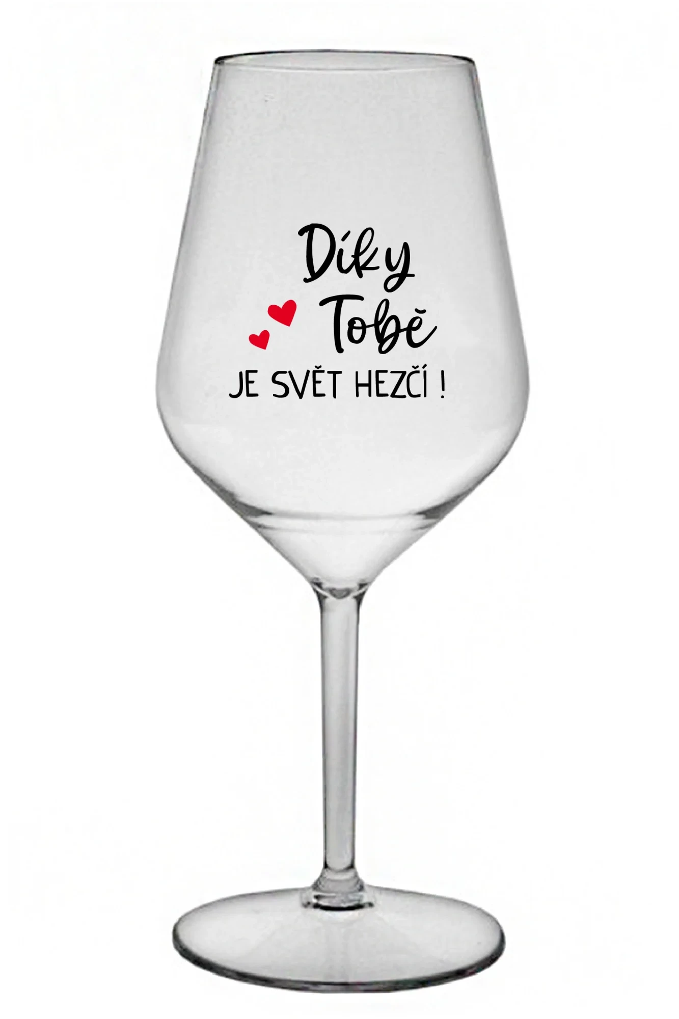 DÍKY TOBĚ JE SVĚT HEZČÍ! - čirá nerozbitná sklenice na víno 470 ml