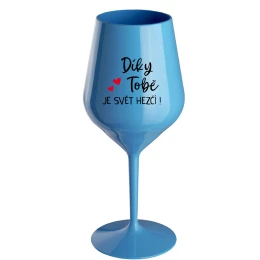 DÍKY TOBĚ JE SVĚT HEZČÍ! - modrá nerozbitná sklenice na víno 470 ml