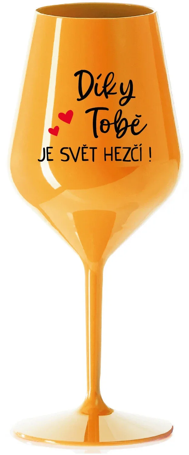 DÍKY TOBĚ JE SVĚT HEZČÍ! - oranžová nerozbitná sklenice na víno 470 ml