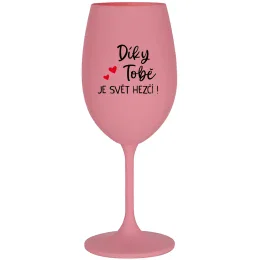 DÍKY TOBĚ JE SVĚT HEZČÍ! - růžová sklenice na víno 350 ml