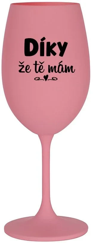 DÍKY ŽE TĚ MÁM - růžová sklenice na víno 350 ml