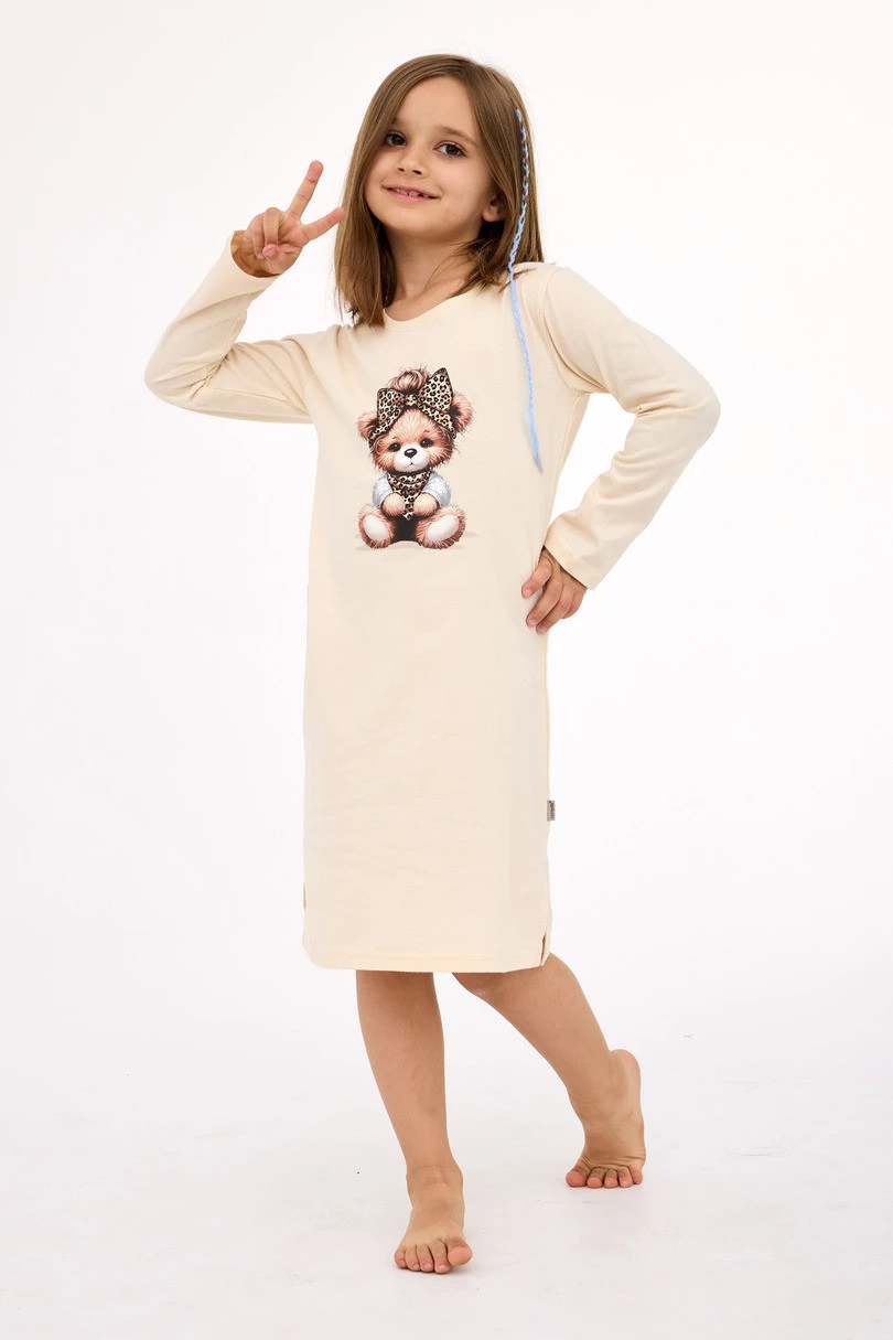 Dívčí noční košile CORNETTE PANTHER 2 549/197 je dokonalou kombinací pohodlí, stylu a mladistvosti. Je vyrobena výhradně z vysoce kvalitní 100% bavlny a poskytuje přirozenou prodyšnost a pohodlí po celou noc. Model s dlouhými rukávy je ideální pro chladnější večery. Přední stranu košile zdobí dynamický barevný potisk s motivem pantera, který podtrhuje energický styl mladých dívek. Zaoblený výstřih košili dodává lehkost a moderní vzhled.