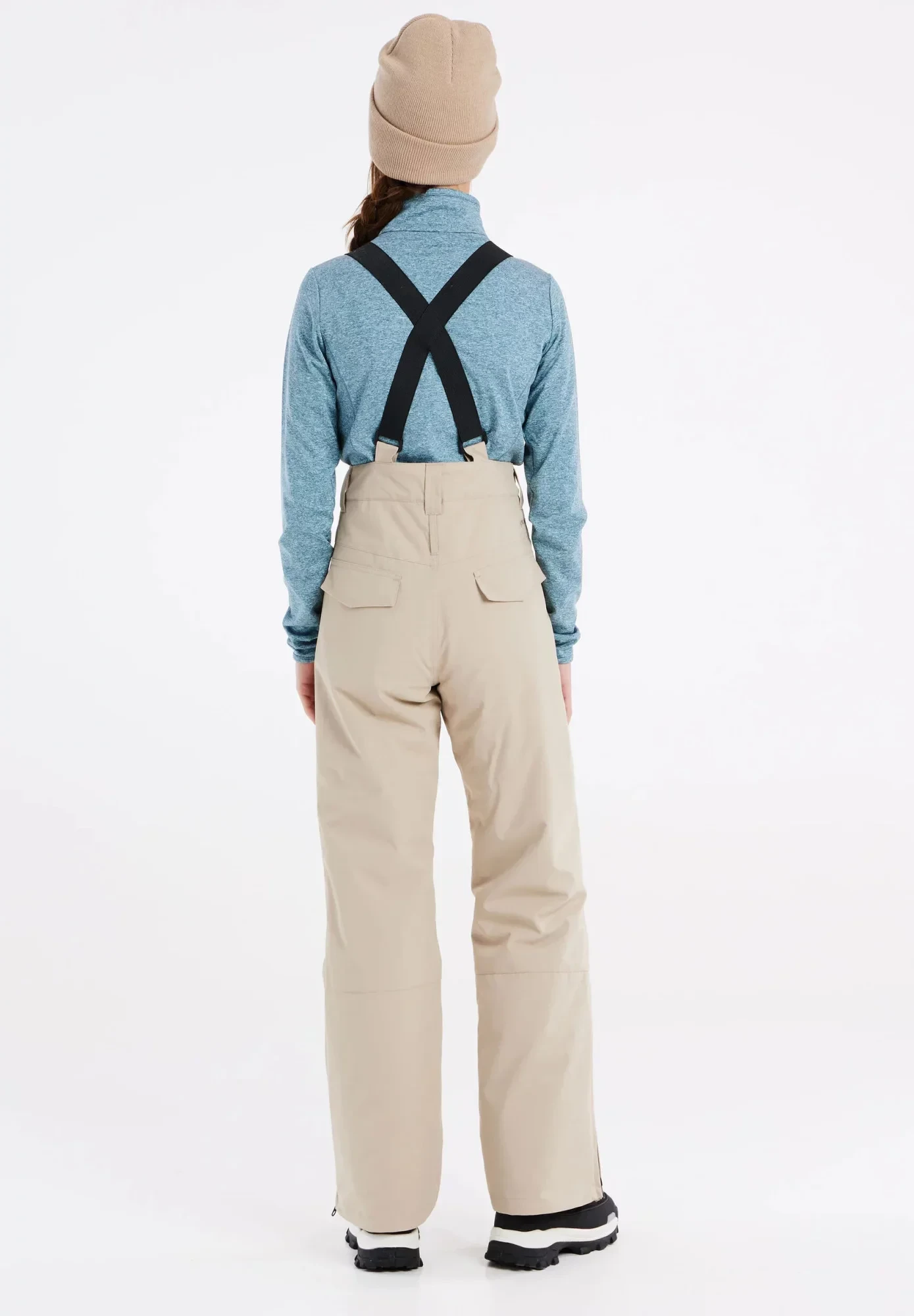 Pas je nastavitelný pomocí vnitřního knoflíku a elastického systému. Na pasu je smyčka, kterou můžete připojit k sněhovému límci vašeho lyžařského kabátu. Na bocích jsou zipové kapsy.