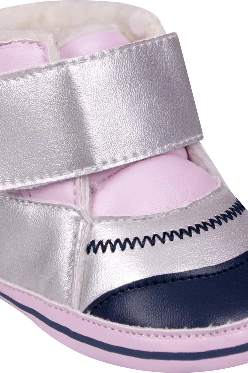 Dívčí obuv, kojenecká, design tenisky z lesklé látky, s nadýchanou izolací a zapínáním na suchý zip.