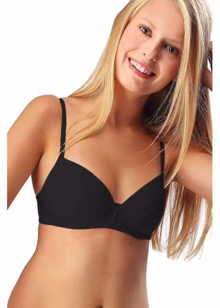 Podprsenka pro náctileté z mikrovlákna (84% nylon, 16% elastan). Košíčky jemně zpevněná houbičkou, bez kostic. Dekorovaná třemi stříbrnými hvězdami. Odnímatelná ramínka. Poskytuje pohodlí a komfort. Baleno v krabičce.