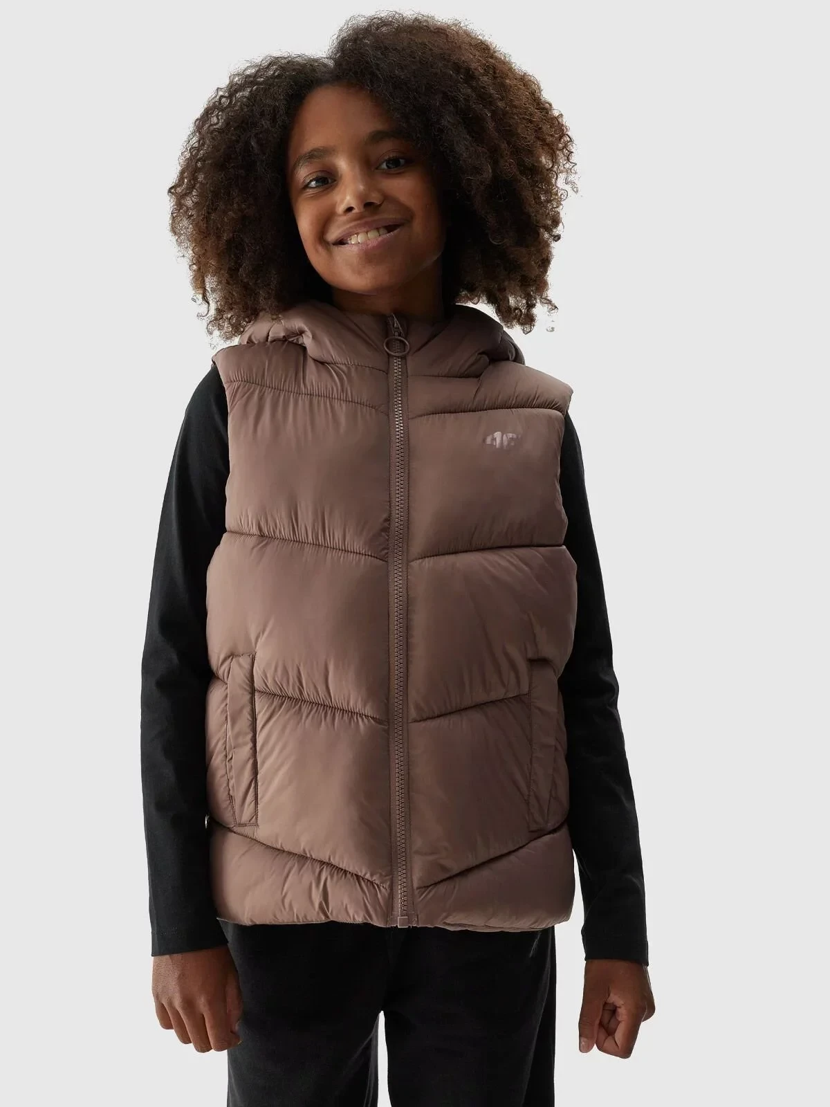 Dívčí prošívaná vesta 4F se syntetickou výplní, která příjemně zahřeje bez zbytečné zátěže.