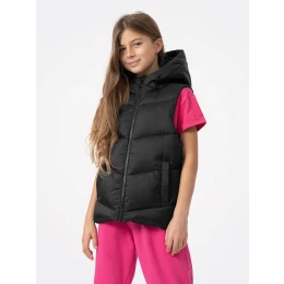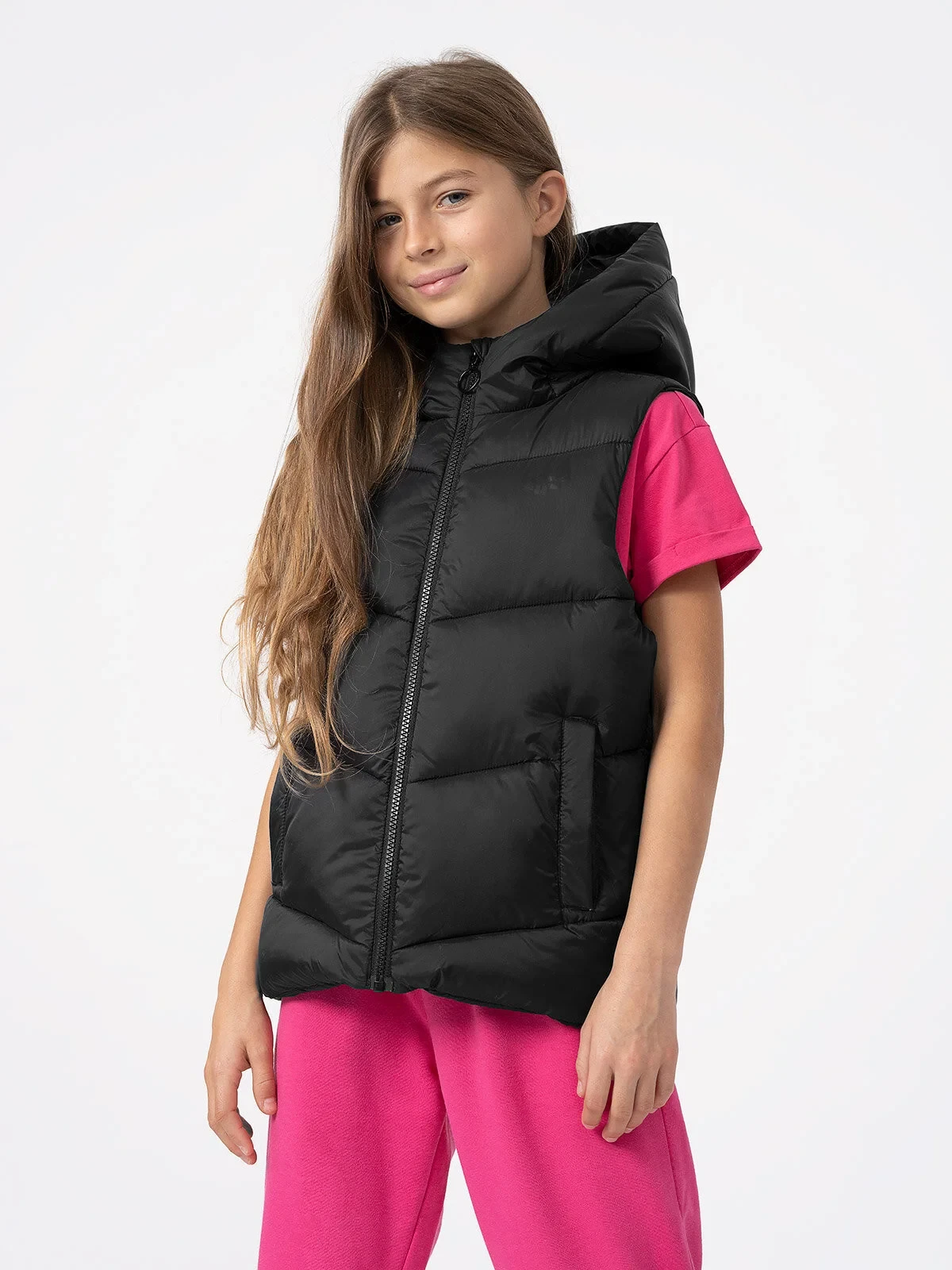 Dívčí prošívaná vesta 4F se syntetickou výplní, která příjemně zahřeje bez zbytečné zátěže.