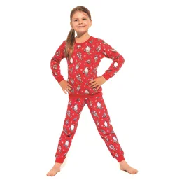 Dívčí pyžamo 033/163 Gnomes3 Cornette - vyrobené z vysoce kvalitní a měkké bavlny - tričko je červené barvy s dlouhými rukávy - zdobené vánočním potiskem - dlouhé kalhoty s barevným potiskem