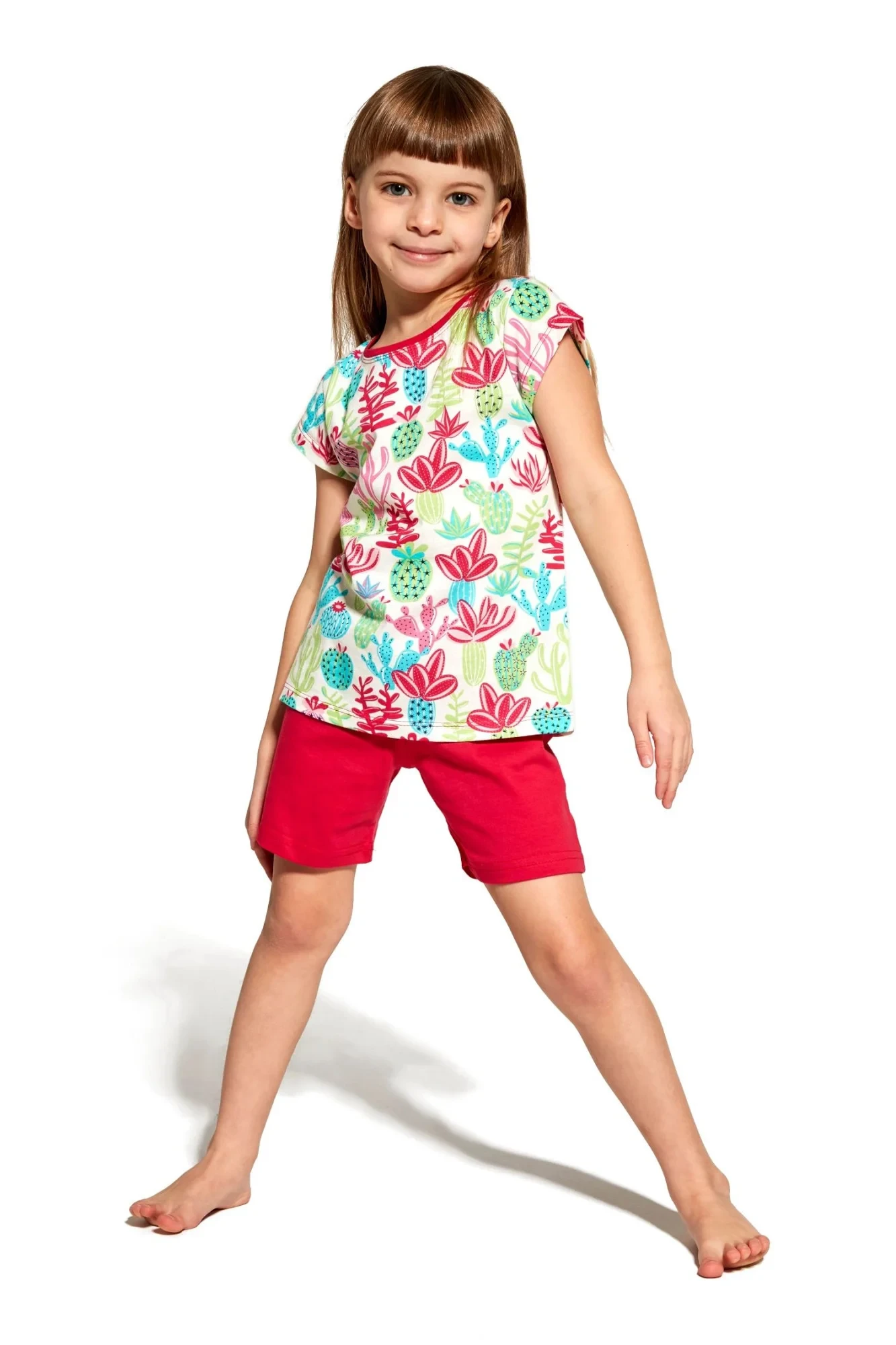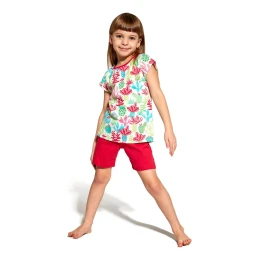 Dívčí pyžamo 357/79 Cactus CORNETTE - z vysoce jakostní bavlny - bílé tričko s krátkými rukávy - se vzorem - červené kraťasy - pyžamo je vhodné i na denní nošení