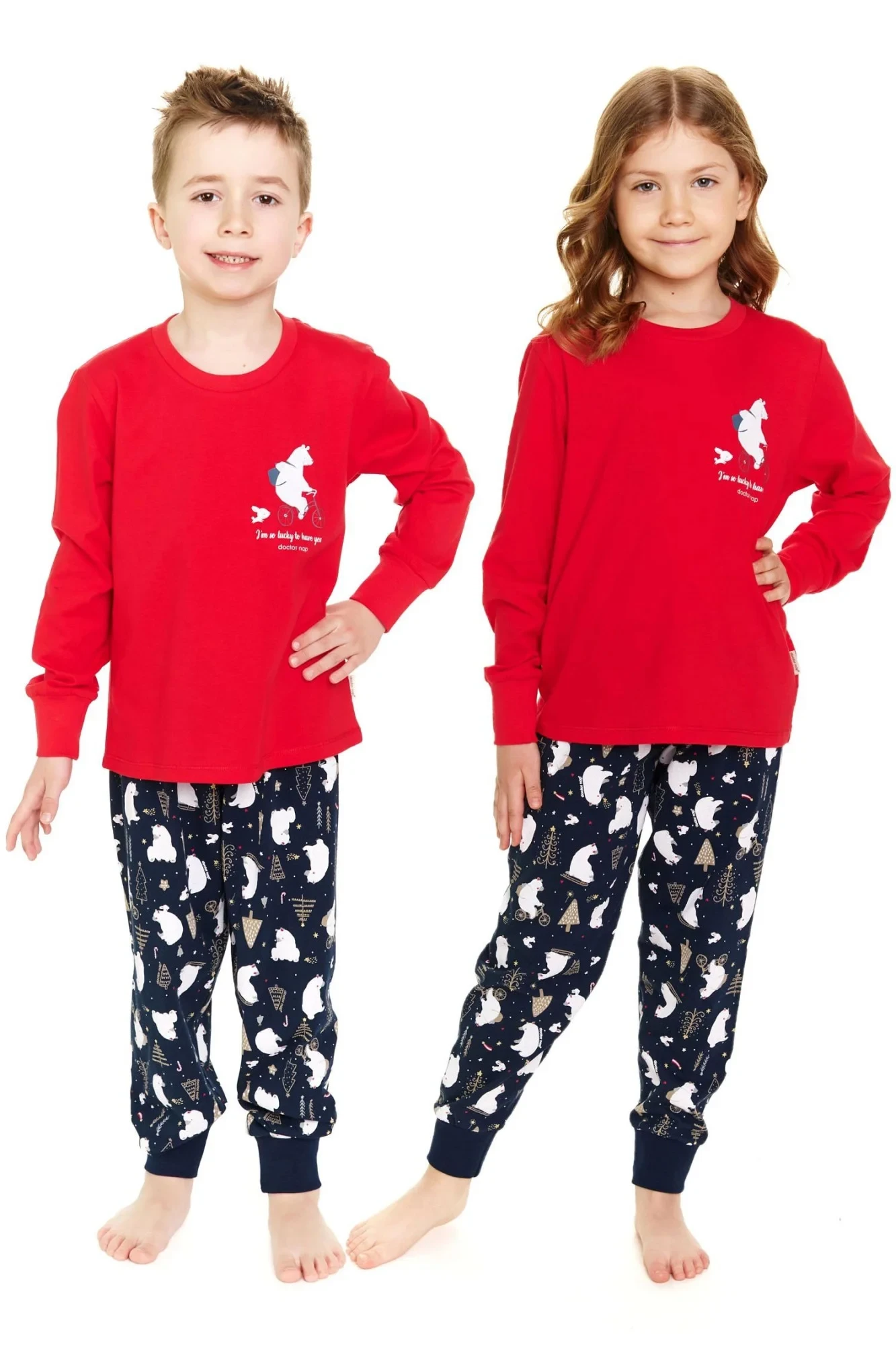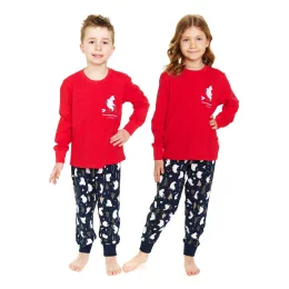 Dívčí pyžamo 5264 red Doctornap - z velmi kvalitní bavlny - červené tričko s dlouhými rukávy - zdobené potiskem na přední straně - dlouhé vzorované kalhoty s kapsami - rukávy a nohavice zakončené manžetami - vánoční motiv - certifikát OEKO-TEX Standard 100
