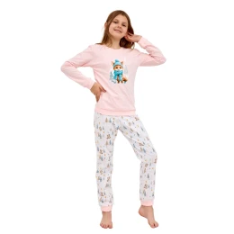 Dívčí pyžamo 592/192 Fox CORNETTE - z vysoce jakostní bavlny - růžové tričko s dlouhými rukávy - kulatý výstřih - přední strana ozdobená potiskem - dlouhé vzorované kalhoty zakončené stahovacím lemem