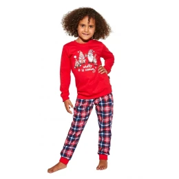 Dívčí pyžamo 594/147 Gnomes Cornette - vyrobené z vysoce kvalitní a měkké bavlny - červené tričko s dlouhými rukávy - s úžasným potiskem - dlouhé kárované kalhoty