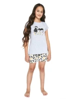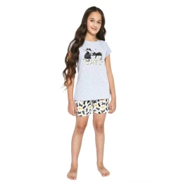 Dívčí pyžamo 787/87 Cornette - vyrobené z vysoce kvalitní a měkké bavlny - tričko je šedé barvy s krátkými rukávy - zdobené barevným potiskem - vzorované kraťasy - pohodlná guma v pase