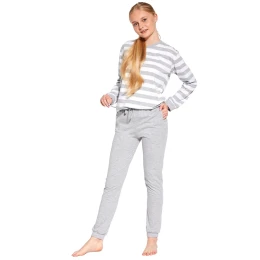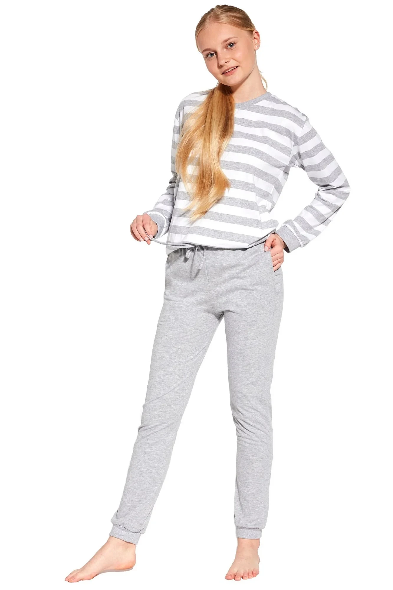 Dívčí pyžamo 948/173 Molly CORNETTE - vyrobené z vysoce kvalitní a měkké bavlny - šedé pruhované tričko s dlouhými rukávy - dlouhé šedé kalhoty s kapsami