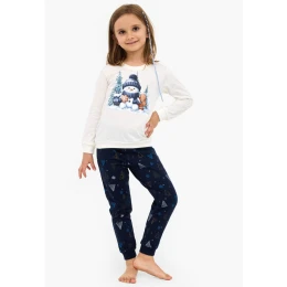 Roztomilé, pohodlné a hřejivé, přesně takové je dívčí pyžamo Snowy day. Ideální pro zimní večery a klidné spaní, s motivem, který si děti zamilují. Horní díl pyžama má dlouhý rukáv a je ozdoben hravým zimním potiskem. Spodní díl tvoří dlouhé kalhoty se zimním vzorem, zakončené pohodlnými manžetami. Vyrobeno ze 100% kvalitní bavlny, která je příjemná na dotek, prodyšná a šetrná k dětské pokožce. Díky elastickému pasu se kalhoty snadno oblékají a pohodlně nosí. Manžety na rukávech i nohavicích zabraňují vyhrnování při spánku.