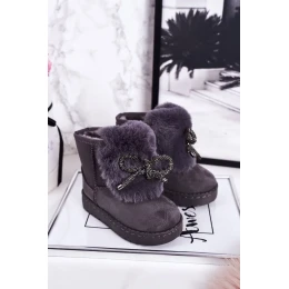 Dívčí Sněhové Teple Boty S Kožešinou Semišové šedé Amelia