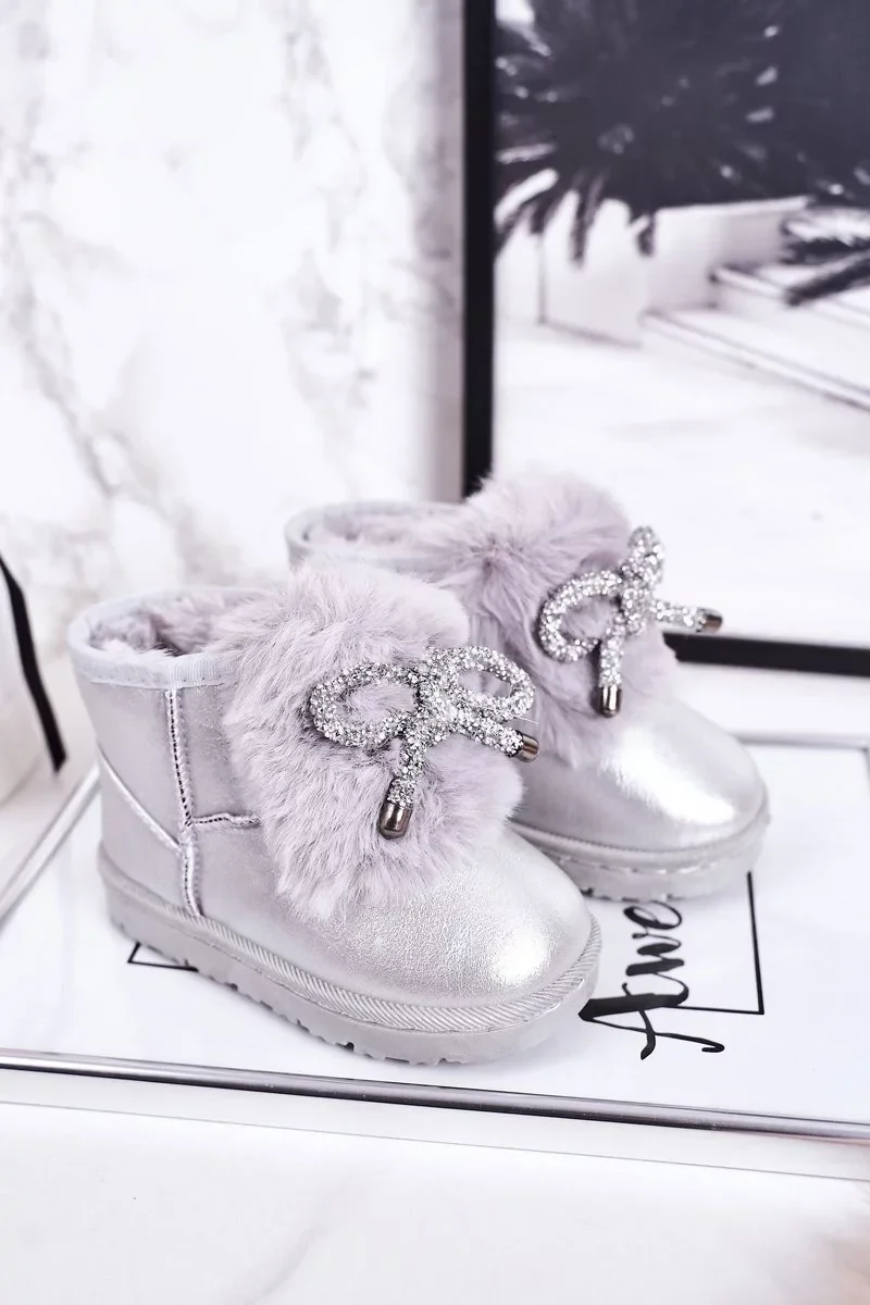 Dívčí Sněhové Teple Boty S Kožešinou Stříbrné Aurora