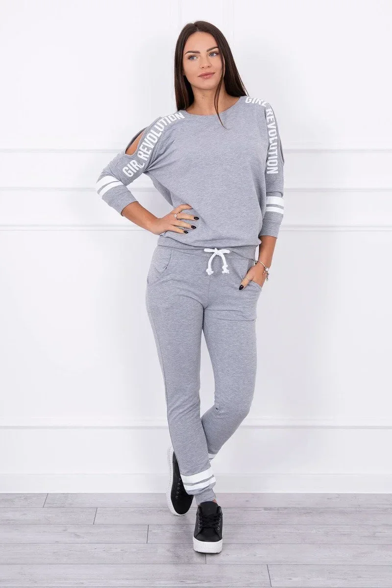 Představujeme vám sadu mikiny a kalhot s nápisem Girl Revolution. Sada je vyrobena z vysoce kvalitního materiálu. Velikost je univerzální a vyhovuje dámám velikosti S, M nebo L.